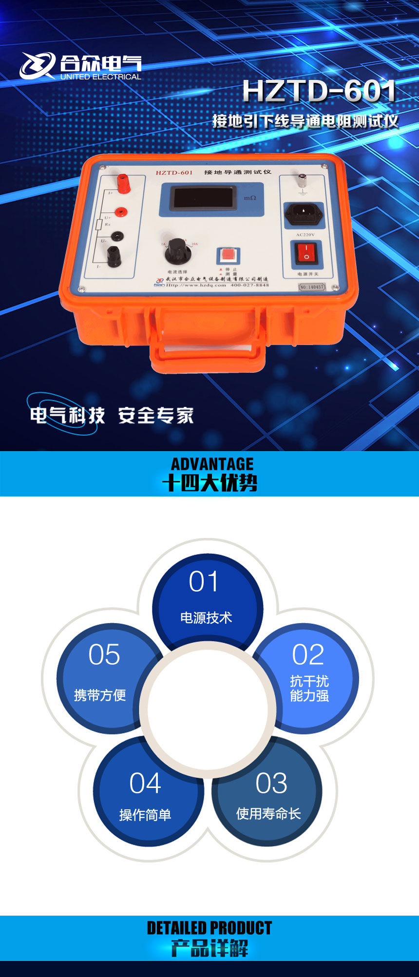 ZTD-601接地引下線導通電阻測試儀作者:合眾電氣發布時間:2016-10-19瀏覽量:9672 次字體顯示:【大】【中】【小】 上一篇: HZBP-400三倍頻電源發生器下一篇: HZJY-621可調高壓數字兆歐表
