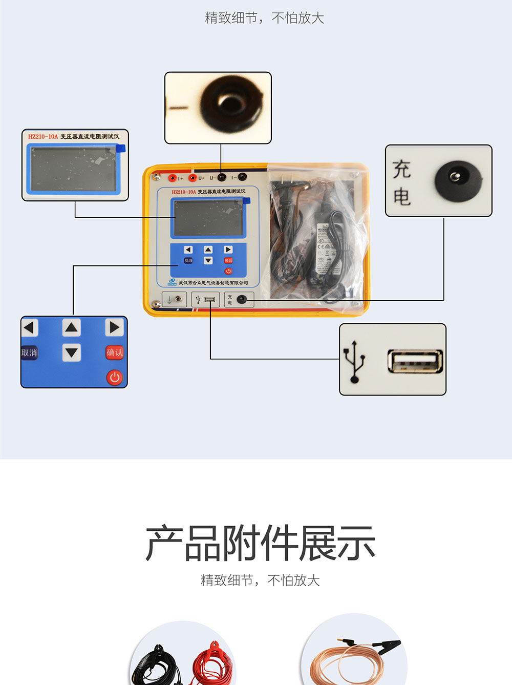 直流電阻測試儀 HZ210-10A 變壓器直流電阻測試儀是一款創新型產品,內置大容量鋰電池,儀器與測試線采用機線一體設計,產品體積小巧,便于攜帶。產品不僅適合變壓器、互感器、電抗器等感性試品的測量,而且適合銅排、導線、開關觸點等阻性試品的測量,儀表測試速度快、準確度高。