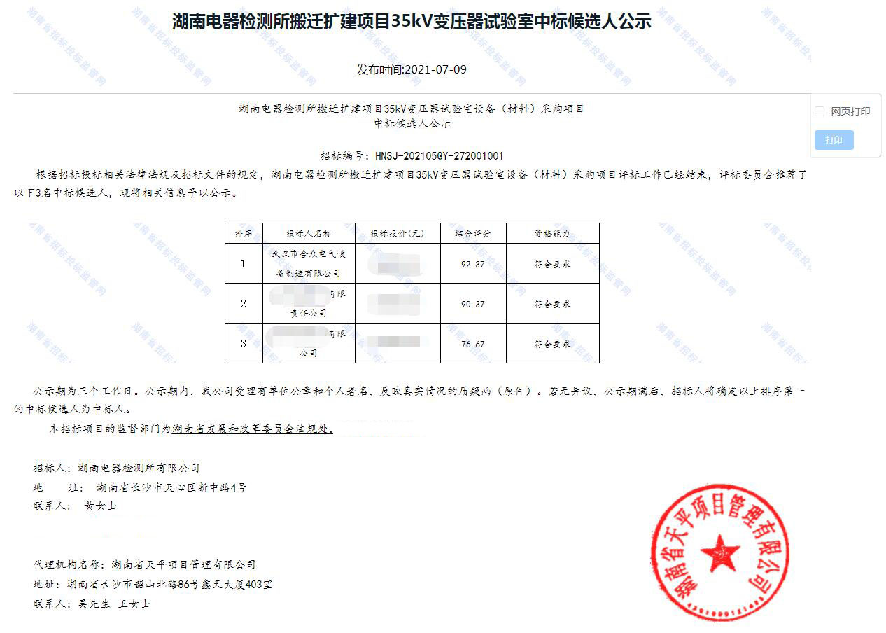 近日湖南電器檢測(cè)所35kV變壓器試驗(yàn)室項(xiàng)目招標(biāo)候選結(jié)果公示發(fā)布,根據(jù)招投標(biāo)相關(guān)法律法規(guī)及招標(biāo)文件規(guī)定,湖南電器檢測(cè)所35kV變壓器試驗(yàn)室設(shè)備(材料)采購(gòu)項(xiàng)目評(píng)標(biāo)工作已經(jīng)結(jié)束,評(píng)標(biāo)委員會(huì)推薦的中標(biāo)候選人相關(guān)信息已公示,武漢市合眾電氣設(shè)備制造有限公司以公示排序第一中標(biāo)人中標(biāo)。
