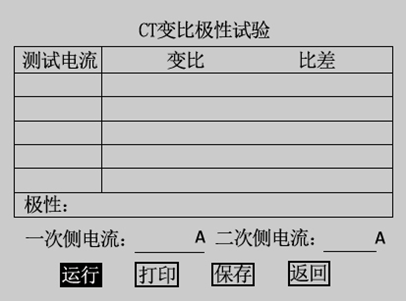 互感器綜合特性測試儀檢查接線完成后,選擇開始試驗選項并按下旋轉(zhuǎn)鼠標,進入變比極性測試界面,如圖3.20所示。進入變比極性測試界面后,將光標移動至運行選項并按下旋轉(zhuǎn)鼠標,儀器自動進行變比試驗。互感器綜合特性測試儀CT變比極性試驗結(jié)果操作界面顯示如圖3.21所示,在變比極性試驗過程中,選擇停止選項并按下旋轉(zhuǎn)鼠標,可提前終止試驗。