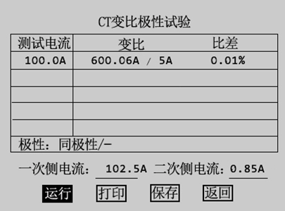 互感器綜合特性測試儀試驗結束后,屏幕顯示出變比極性試驗結果界面,如圖3.21所示。