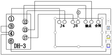 繼電保護測試儀按上圖接線,(3)(4)接J5黑柱(負端),(17)接J5紅柱(正端)