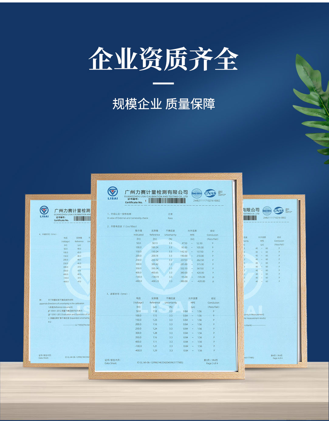波頭時間:1.2±30%μs,波尾時間:50±20%μs,過沖:小于5%,效率:不低于90%。±1.2/50μs標(biāo)準(zhǔn)雷電沖擊電壓全波,效率大于90%。